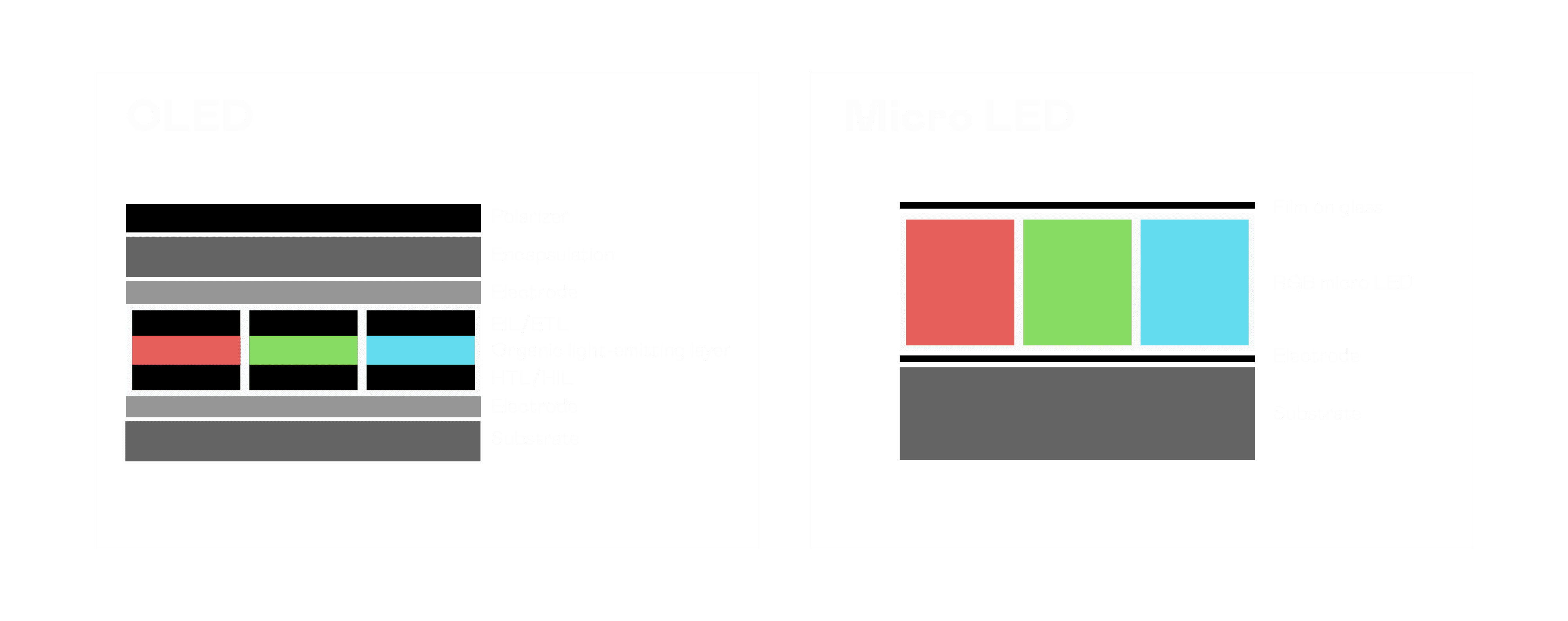 以 LED 做为显示画素,,,可让 LED 的发光效率发挥到极致,,,从而让显示器具备优异的亮度表现,,,,不论是在户外或室内,,,均具备出众的显示效果。。。同时,,,与使用有机材料的 OLED 相比,,LED 具备更稳定、、寿命更长的特性,,不仅不会有画面烙印问题,,而且更不容易出现故障、、、、坏点。。