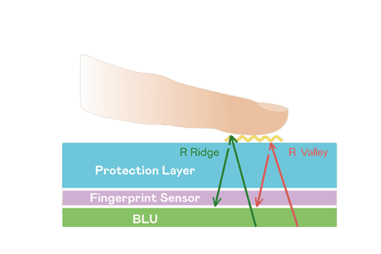 超高像素密度光学感测技术能精准判定手指反射的极微弱光讯号,,即使细致指纹也可清晰辨识,,并可透过手指脉搏造成的细微灰阶变化侦测心跳,,,,让身分验证更精确。。。TFT 架构优化可降低讯号传输干扰,,,达到光感测器最佳讯杂比(讯号/杂讯的比例)。。透过增强光讯号接收强度、、优化感测器电路及导入特殊光学膜材料,,提高感测器敏度。。。整合系统之指纹扫描装置可符合最高等级的FBI国际安全规范认证需求。。。